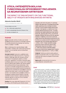 HAQ). Za procenu intenziteta bola upotrebljena je vizualno Reumatoidni artritis je hronična, progresivna, multisi-