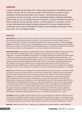 postoperativne mučnine i povraćanja, vreme do uspostavljanja laktacije, mobilizaciju pacijentkinja