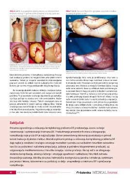 Legenda: A) Neposredno posle operacije pokrivanja defekta kože mikrovaskularnim