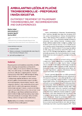 1 Klinika za pulmologiju, Univerzitetski klinički centar Srbije, Beograd, VTE). U 70% slučajeva PTE je udružena sa dubokom ven-