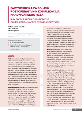 Korespondencija sa autorom: Osim tehnike anestezije, kao mogući faktori rizika